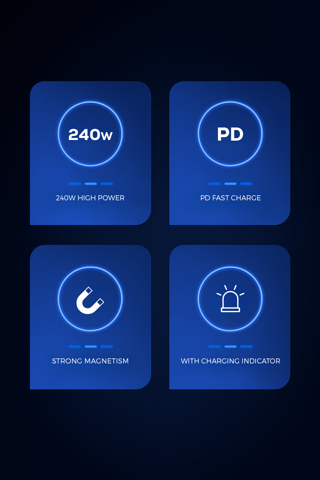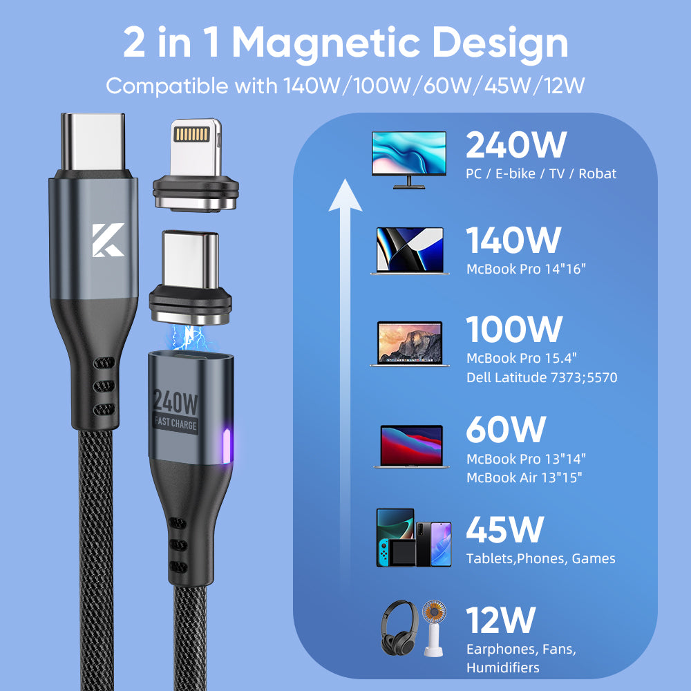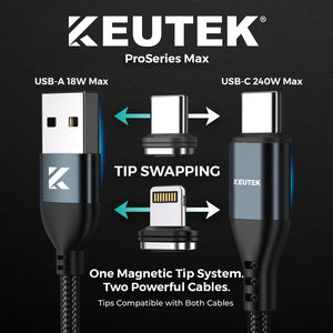 The KEUTEK ProSeries Max cable is engineered for extreme performance, supporting up to 240W USB-C PD and 18W USB-A fast charging. Built with our newly redesigned magnetic system, it ensures a more secure connection and delivers ultra-efficient charging with real-time voltage and current optimization, extending your battery’s lifespan.